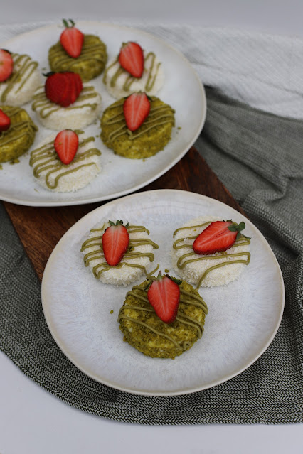 Danach den Pudding vorsichtig aus den Gläsern rausholen und in 4-8 Scheiben schneiden, diese dann sofort in Kokosflocken wälzen und dann auf einen Servierteller legen. Bis zum Verzehr Kühl stellen.
