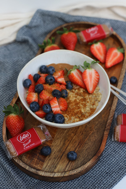 In einer Pfanne oder Topf Milch mit der Lotuscreme verrühren und zum Schmelzen bringen, Haferflocken und Lotuskekse unterrühren und auf höchster Stufe ca. 2-3 Minuten köcheln lassen, in eine Schale geben.Mit den Wunschzutaten garnieren und genießen!